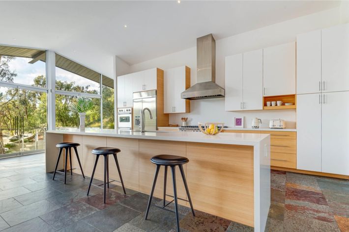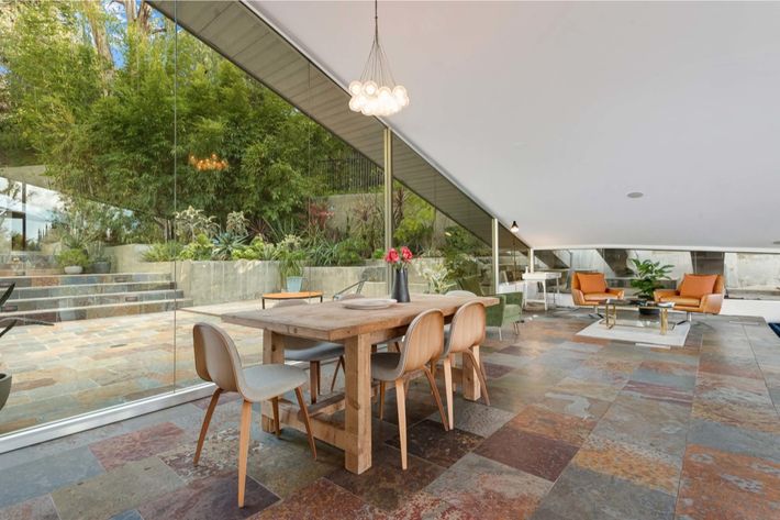 Az 1.3 hektáros telken tűzhely, fedett kültéri étkező és egy szögletes autóbeálló is található. Most 3999900 dollárért elérhető.