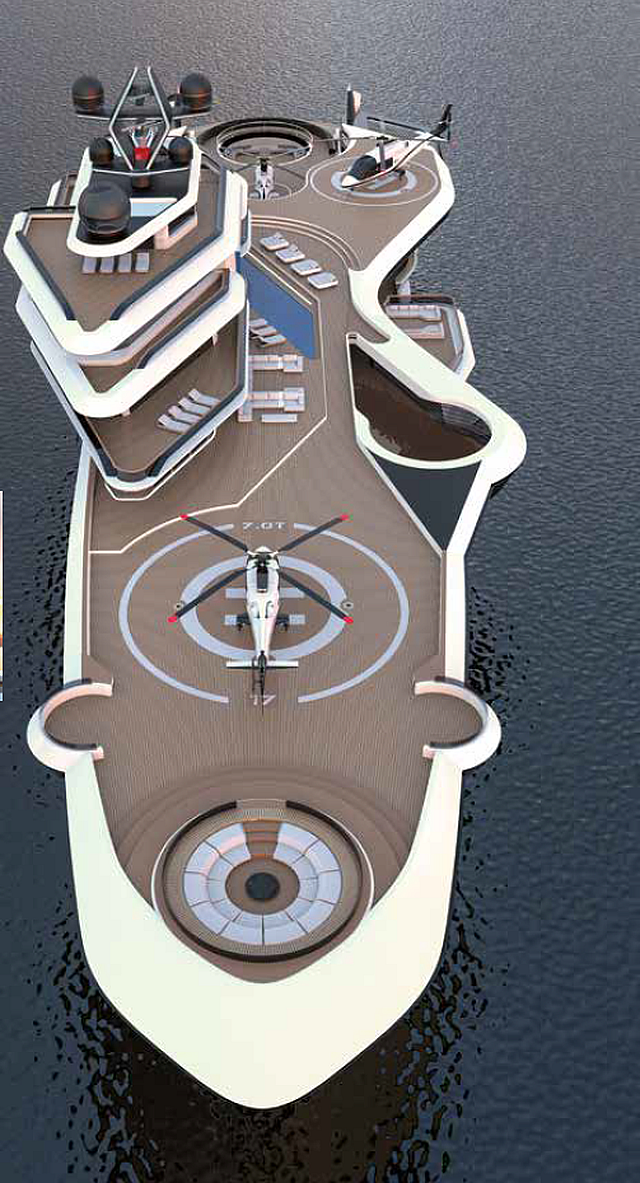 A nemzeti büszkeség új, úszó erődje született meg Enzo Manca milánói tervező asztalán. Az Egyesült Arab Emírségek számára megálmodott „UAE One” egy 140 méter hosszú megajacht, amely kilenc fedélzetén a fejedelmi kényelmet és a legmagasabb szintű diplomáciát egyesíti. A sötétített ablakok mögött nemcsak luxuslakosztályok és geometrikus medence rejtőzik, hanem szigorúan titkos tárgyalók, sajtószoba, sőt, még tengeralattjárók fogadására alkalmas belső kikötő is.